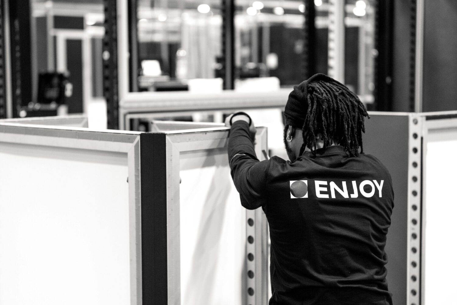 Enjoy Events controls the entire production chain in-house: 3D design, printing, aluminum joinery, packaging and logistics. With no subcontracting, this guarantees optimal quality control and a reduced carbon footprint.
